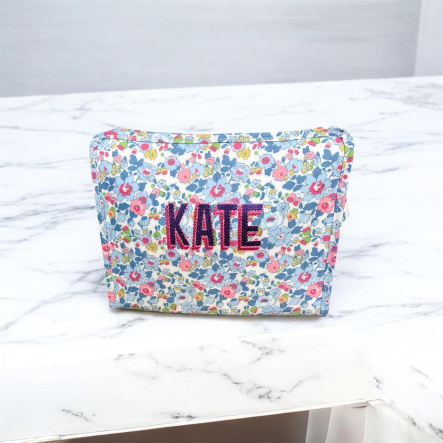Featuring a personalized monogram, this case combines elegance with practicality. The generous size means you’ll never have to compromise on what you carry, and the monogram adds a touch of personal charm. Whether you’re juggling parenthood, heading to work, or celebrating a milestone, this cosmetic case is your perfect companion.