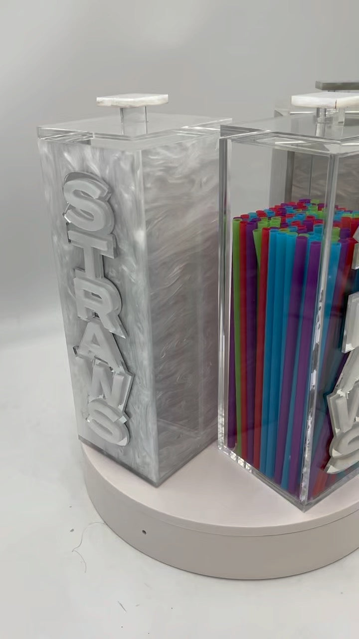 Keep your straws organized and within easy reach with this modern lucite straw holder. Crafted from crystal-clear lucite, it adds a touch of elegance to your countertop, bar cart, or coffee station while keeping things neat and accessible. Perfect for homes, cafes, or entertaining spaces—wherever form meets function.